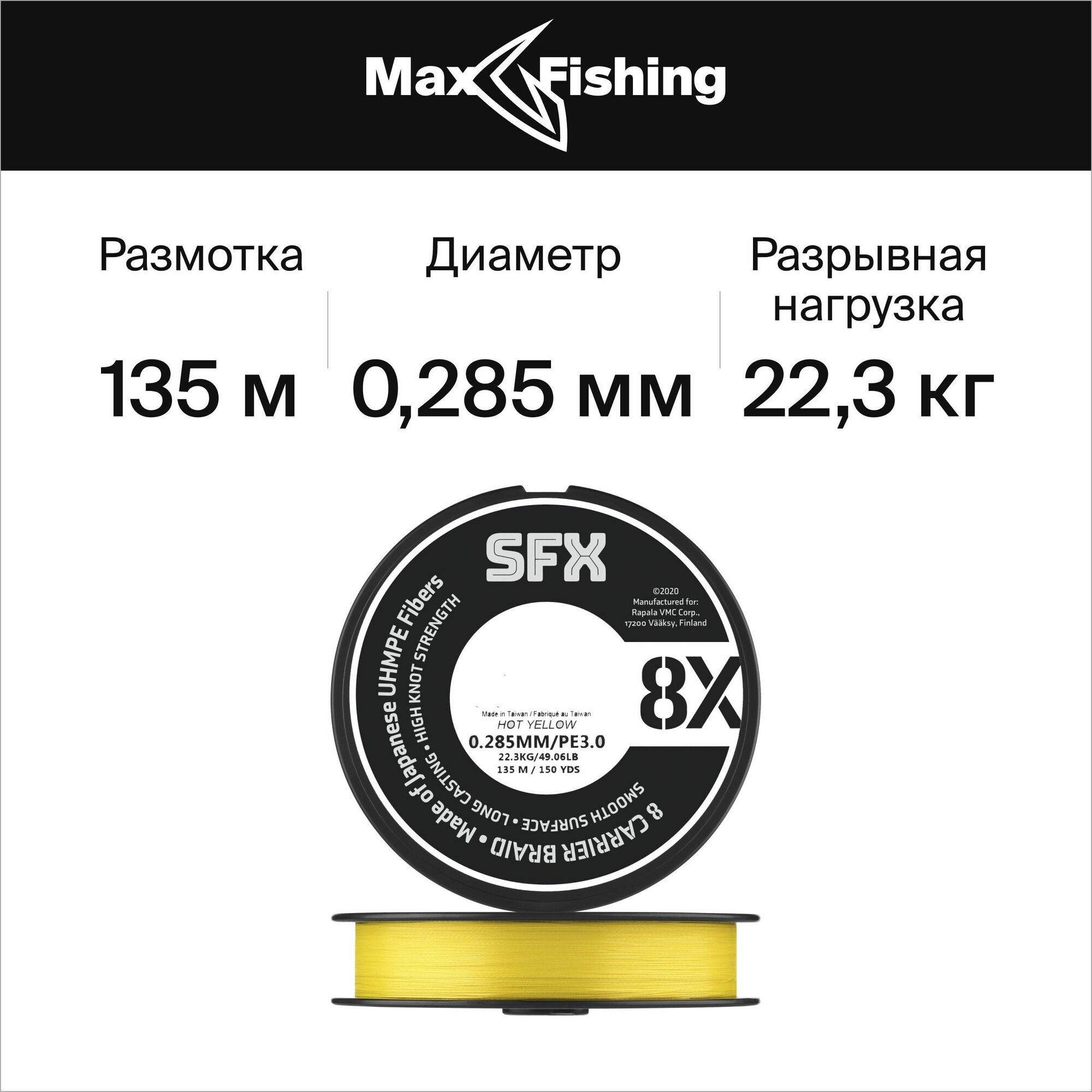 Плетеный шнур для рыбалки SFX 8X длина 135 м, диаметр 0.235 мм, цвет желтый, SUFIX леска
