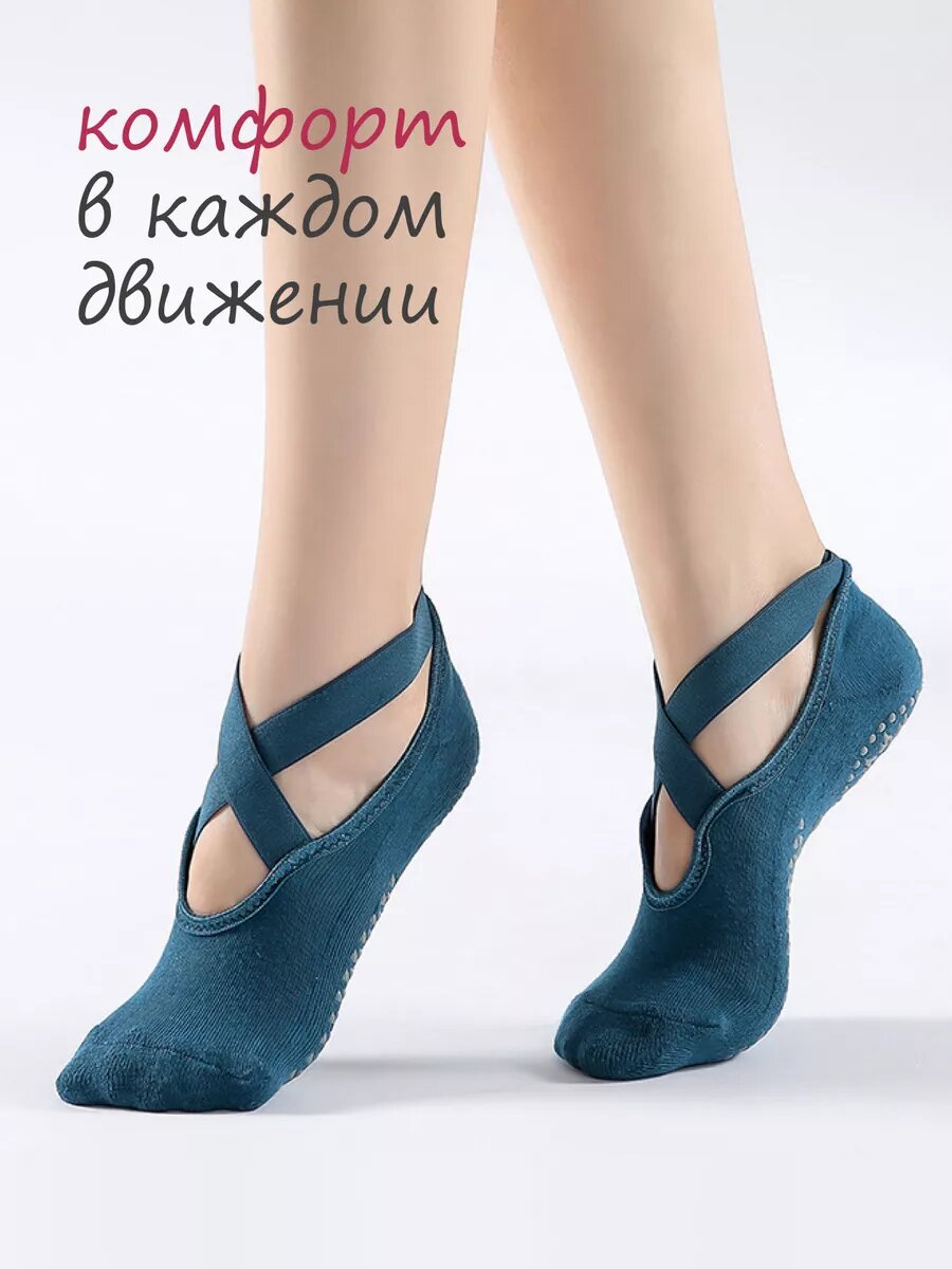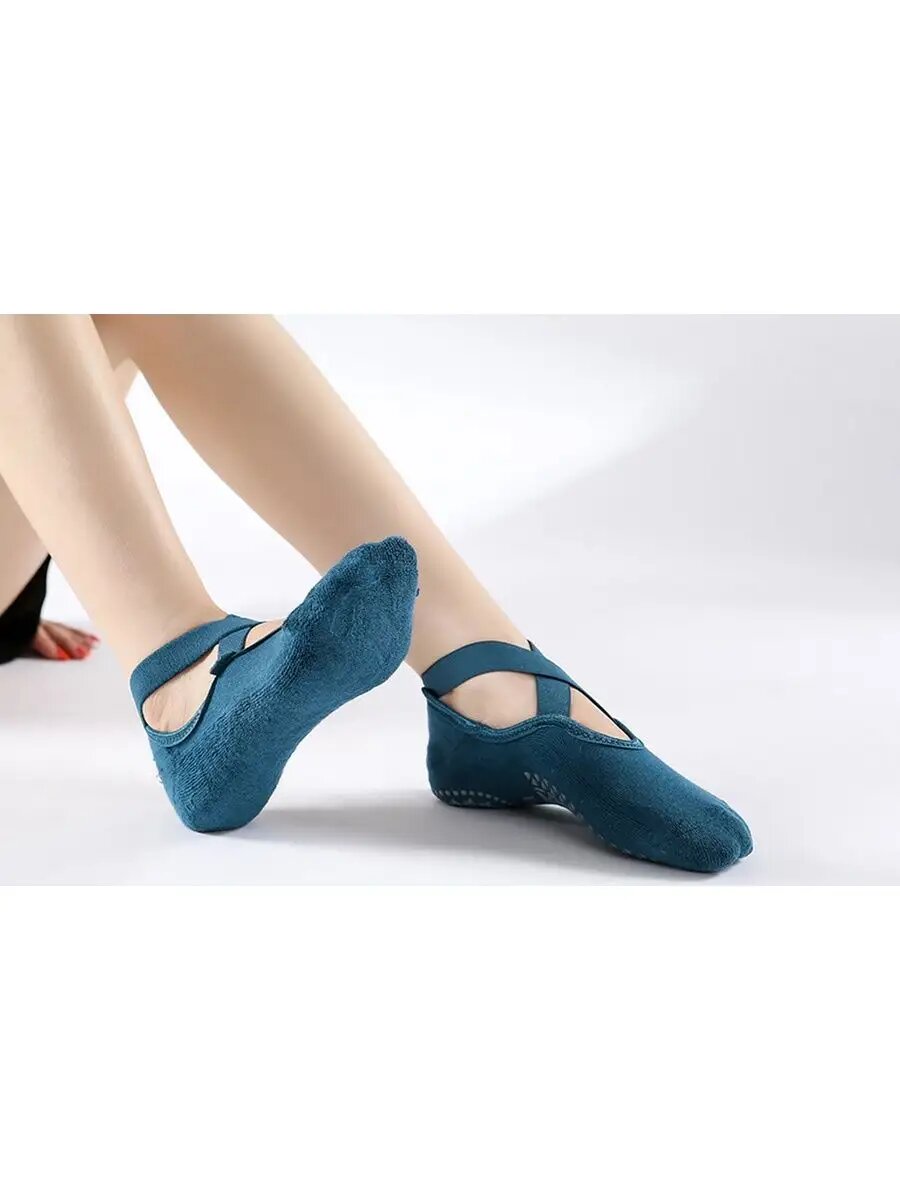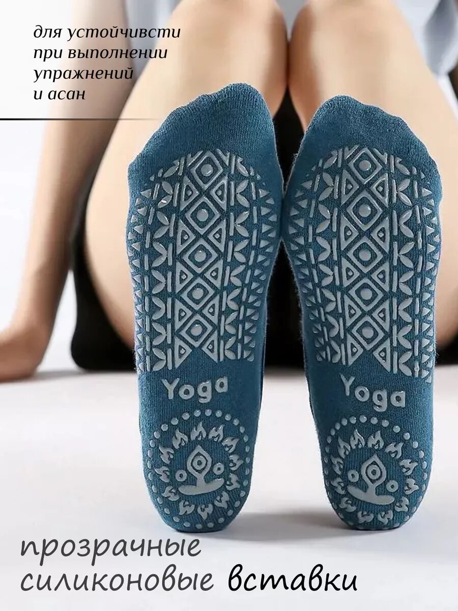 Противоскользящие спортивные носки для йоги, синие
