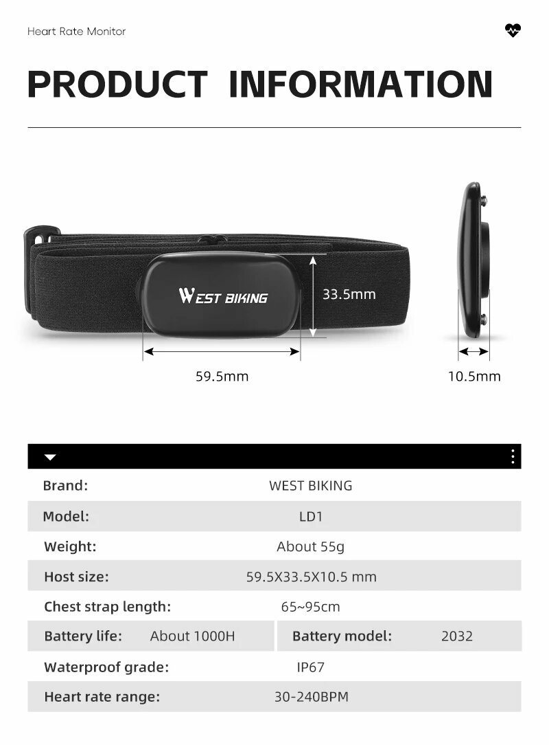 Спортивный пульсометр WEST BIKING, Черный интересное: