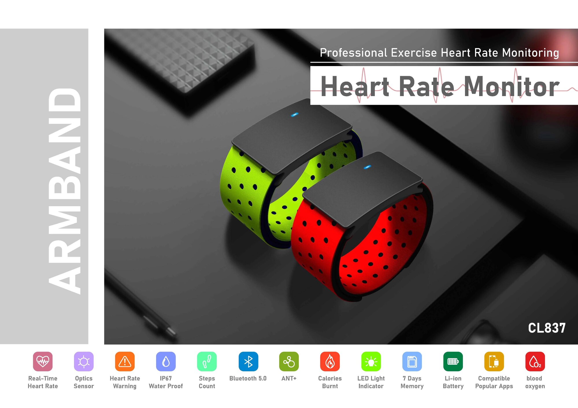 Нарукавник с датчиком сердечного ритма, Bluetooth 5,0 ANT + IP67, водонепроницаемый нагрудный ремень для измерения уровня кислорода в крови, для спортивного монитора Wahoo