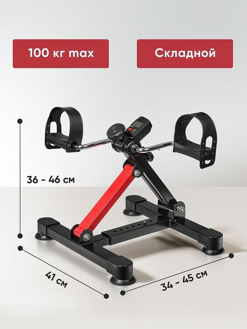 Купить Тренажер для ног и рук Willman педальный, мини велотренажер, для дома, максимальный вес 100 кг, складной, с дисплеем, черный
