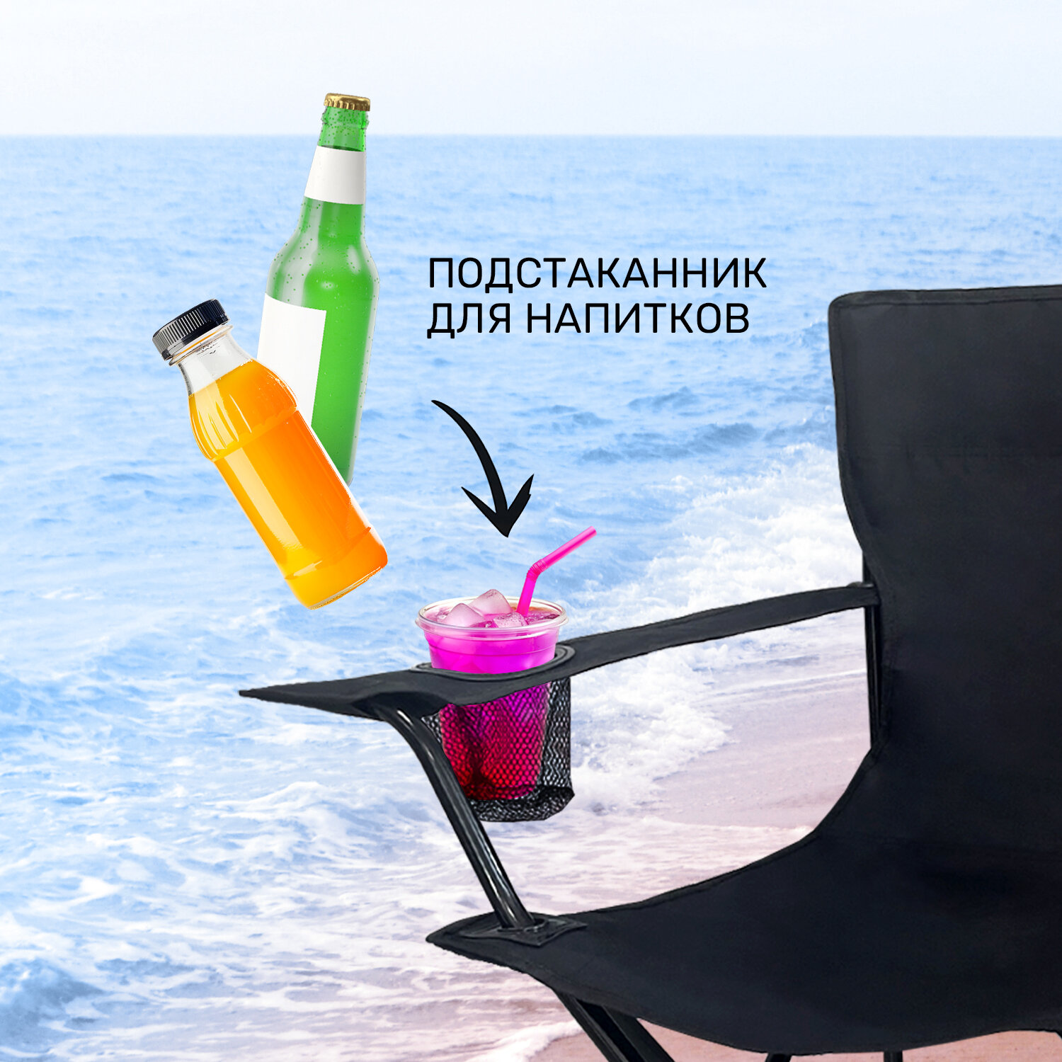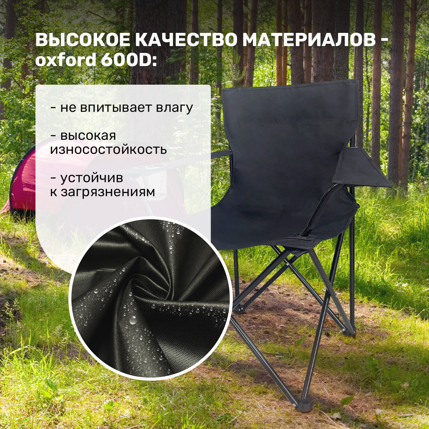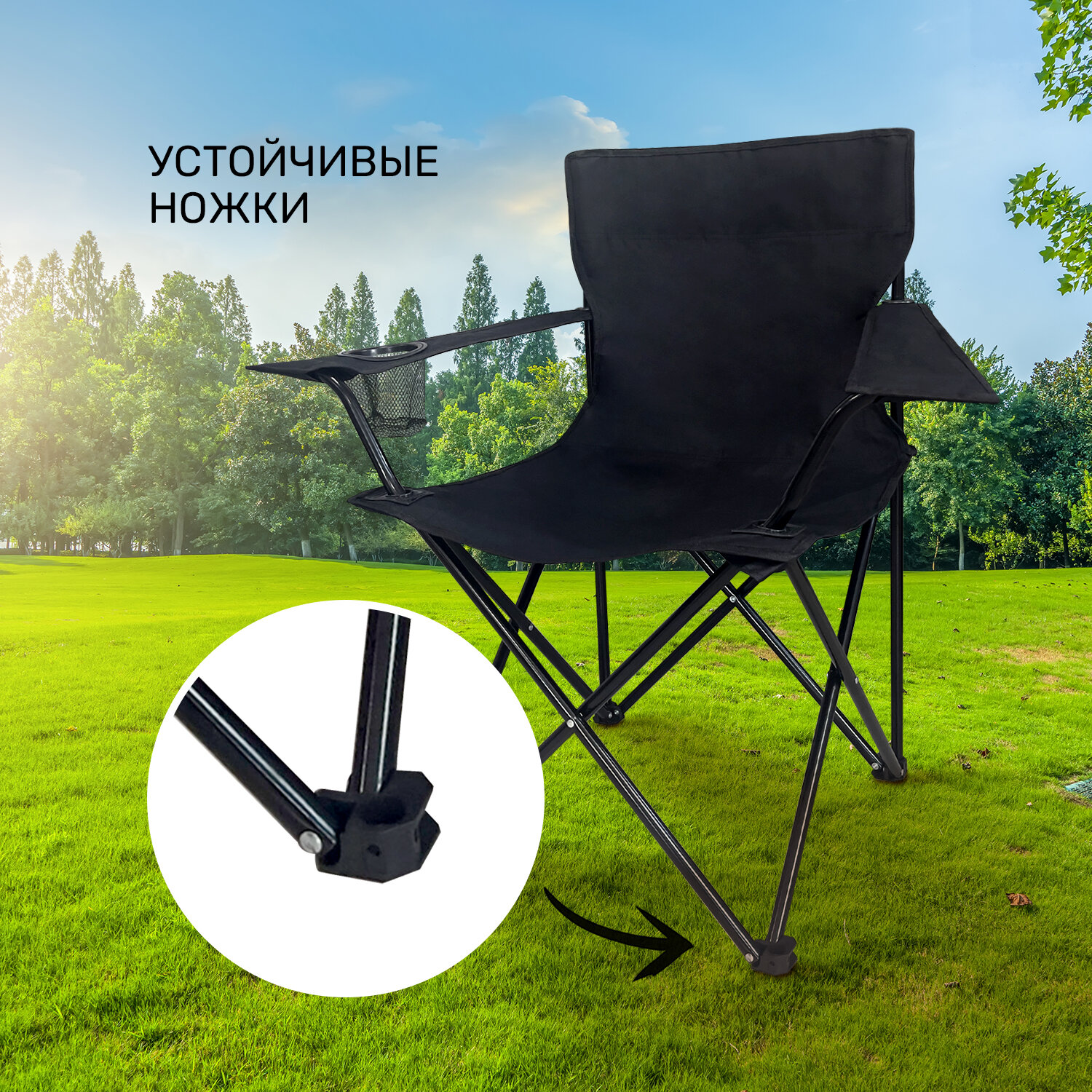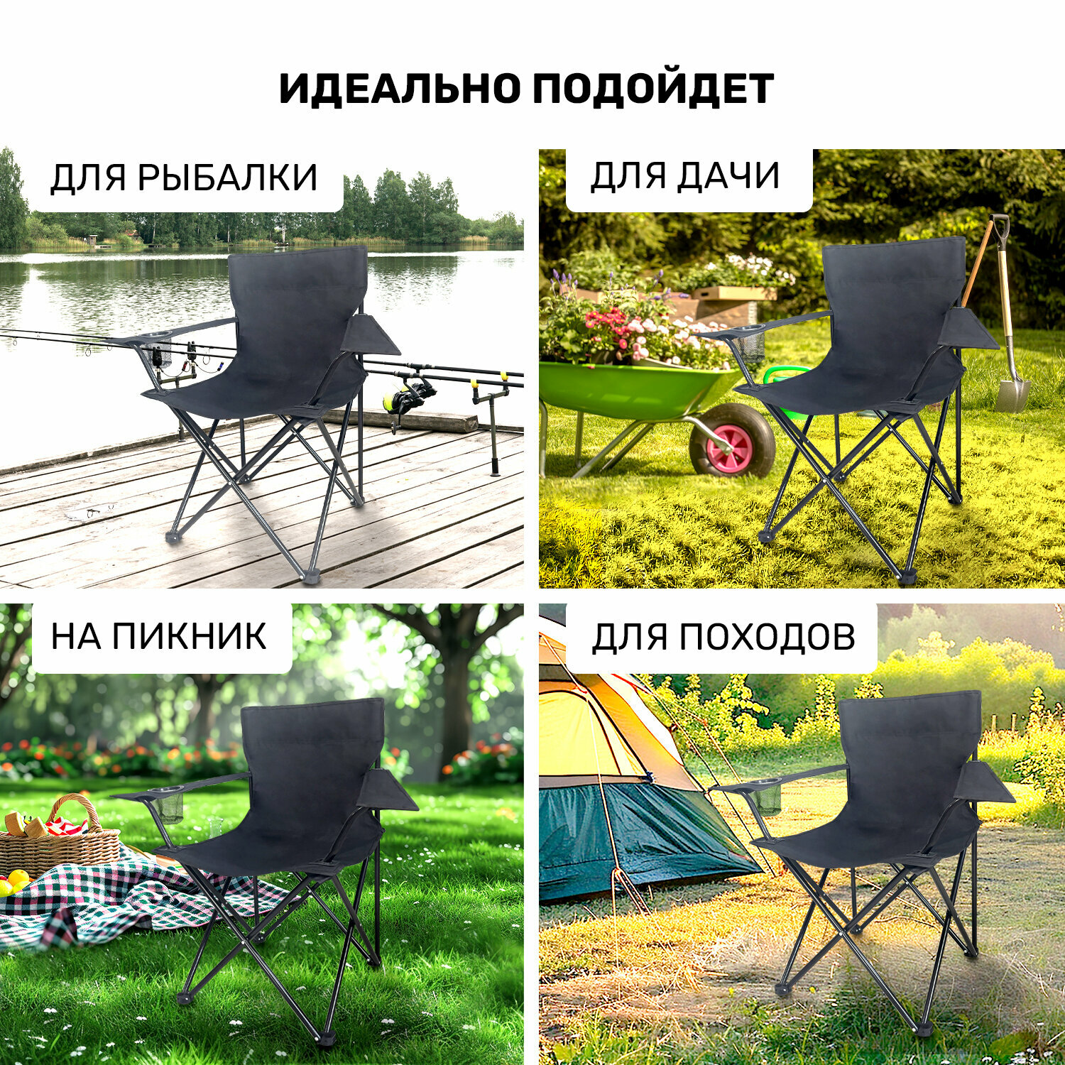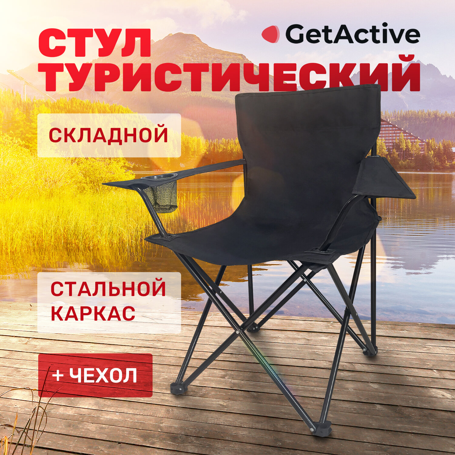 Складной туристический стул рыболовный со спинкой и подлокотниками GetActive SWY-C04-B черный. Кресло раскладное для отдыха на природе: пикника, рыбалки, кемпинга, сада, компактный походный стульчик интересное:
