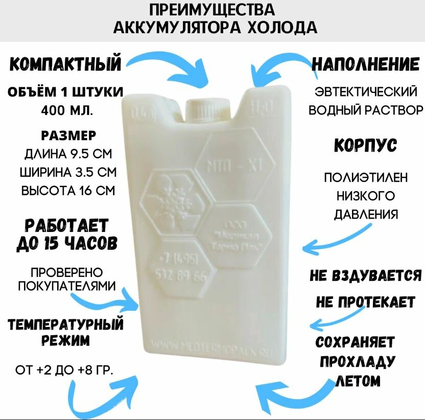 Аккумулятор холода 5 штук / Хладагент / Генератор холода / Хладоэлемент МТП-Х1, 400 мл интересное: