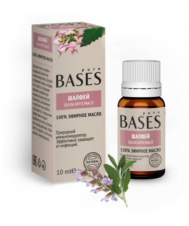 Натуральное 100% эфирное масло PURE BASES Шалфей, 10 мл.