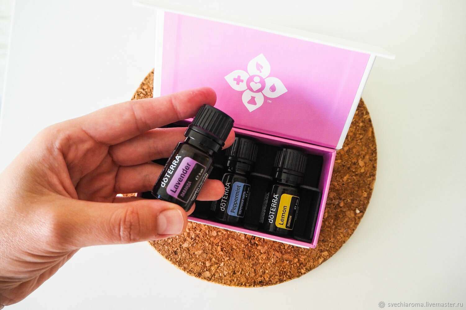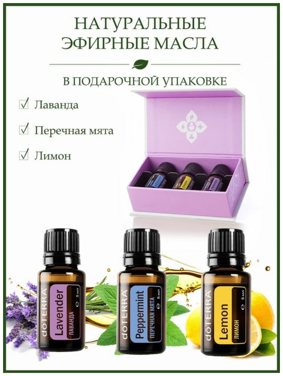Подарочный ознакомительный набор эфирных масел Дотерра. Лимон 5 мл, перечная мята 5 мл, лаванда 5 мл интересное:
