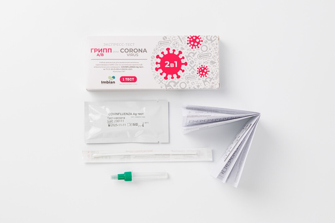 Тест Экспресс на антиген 2в1, Covid-19+грипп А/В, Imbian, 1шт iKR-004/1.1