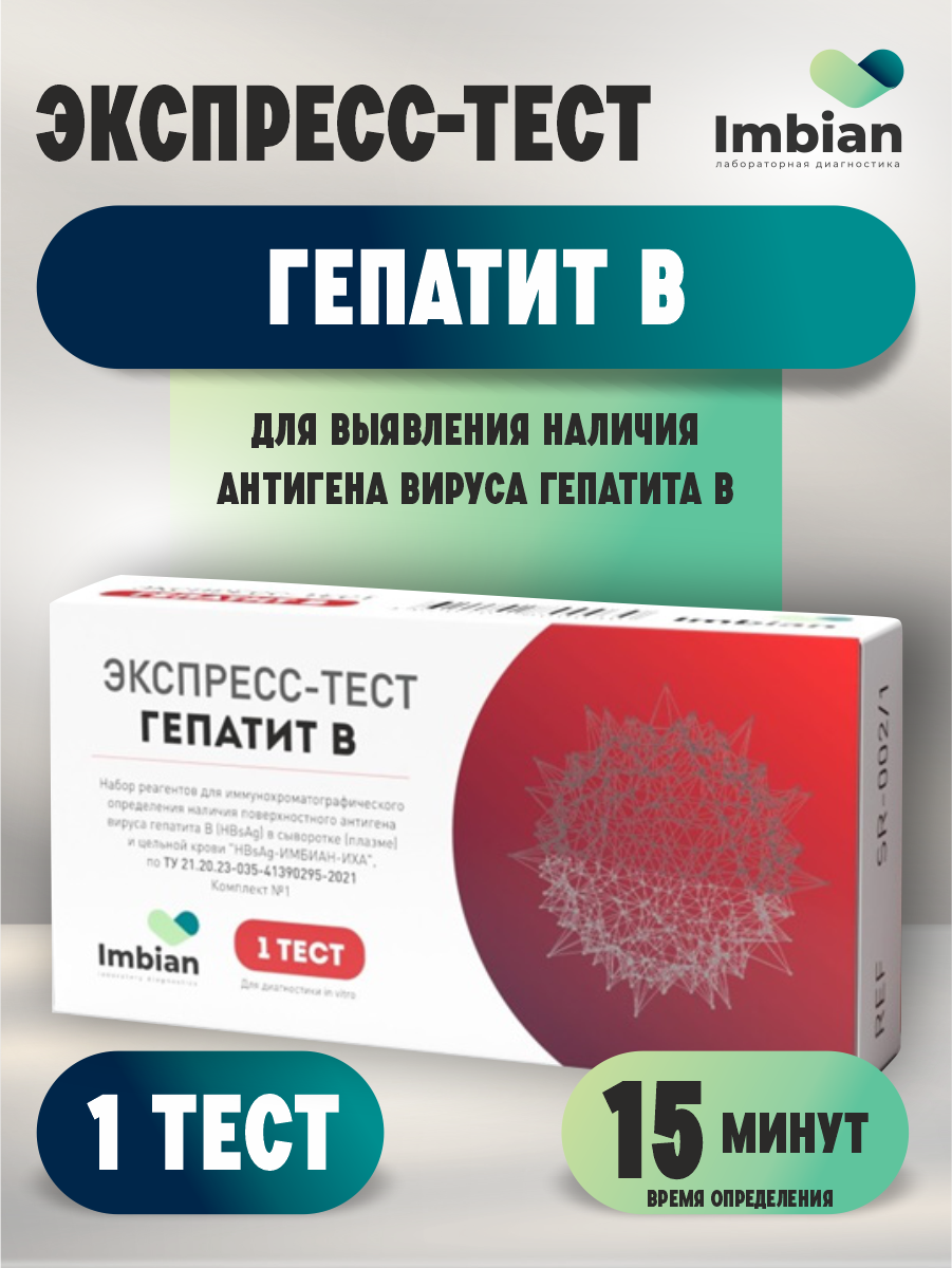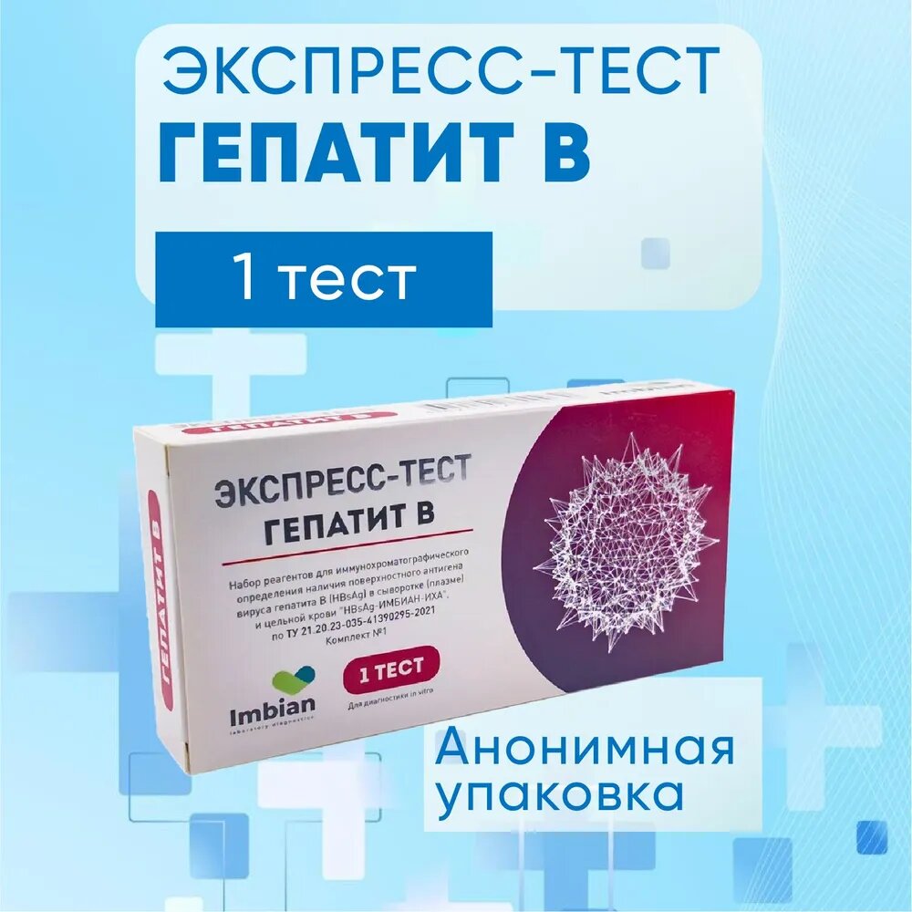 Экспресс тест имбиан на Гепатит В, 2 теста, комплект из 2х упаковок, анализы на Гепатит Б