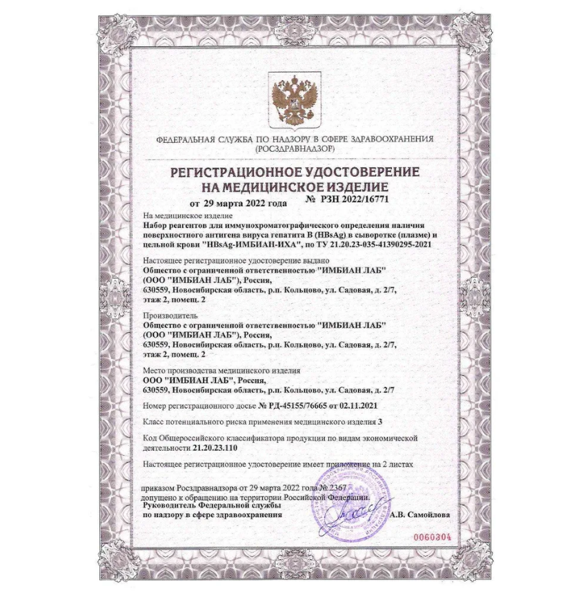 | Назначение | для определения состояния здоровья / определение гепатита В |