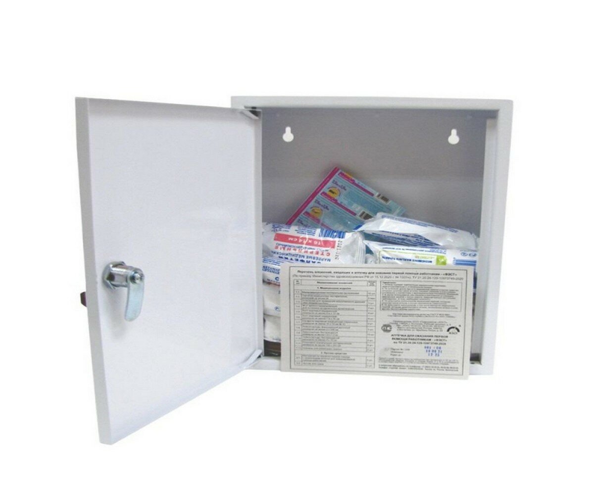 Купить Аптечка Фэст Предприятие ФЭСТ для оказания первой помощи работникам (футляр металлический шкаф)