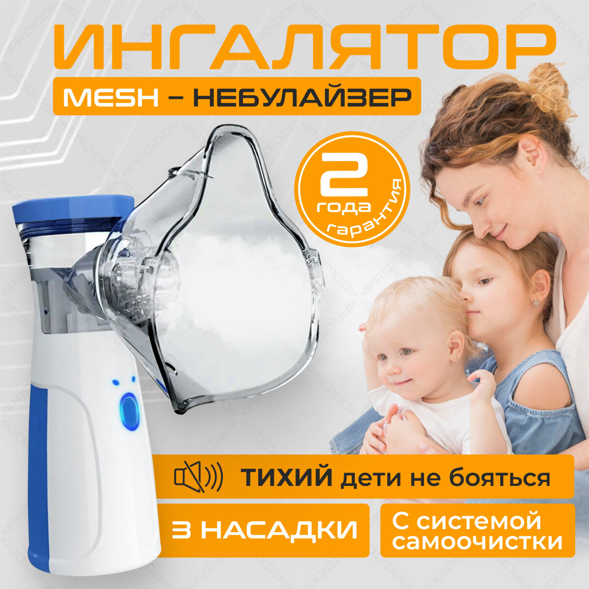Портативный ингалятор небулайзер на батарейках с насадками для всей семьи интересное: