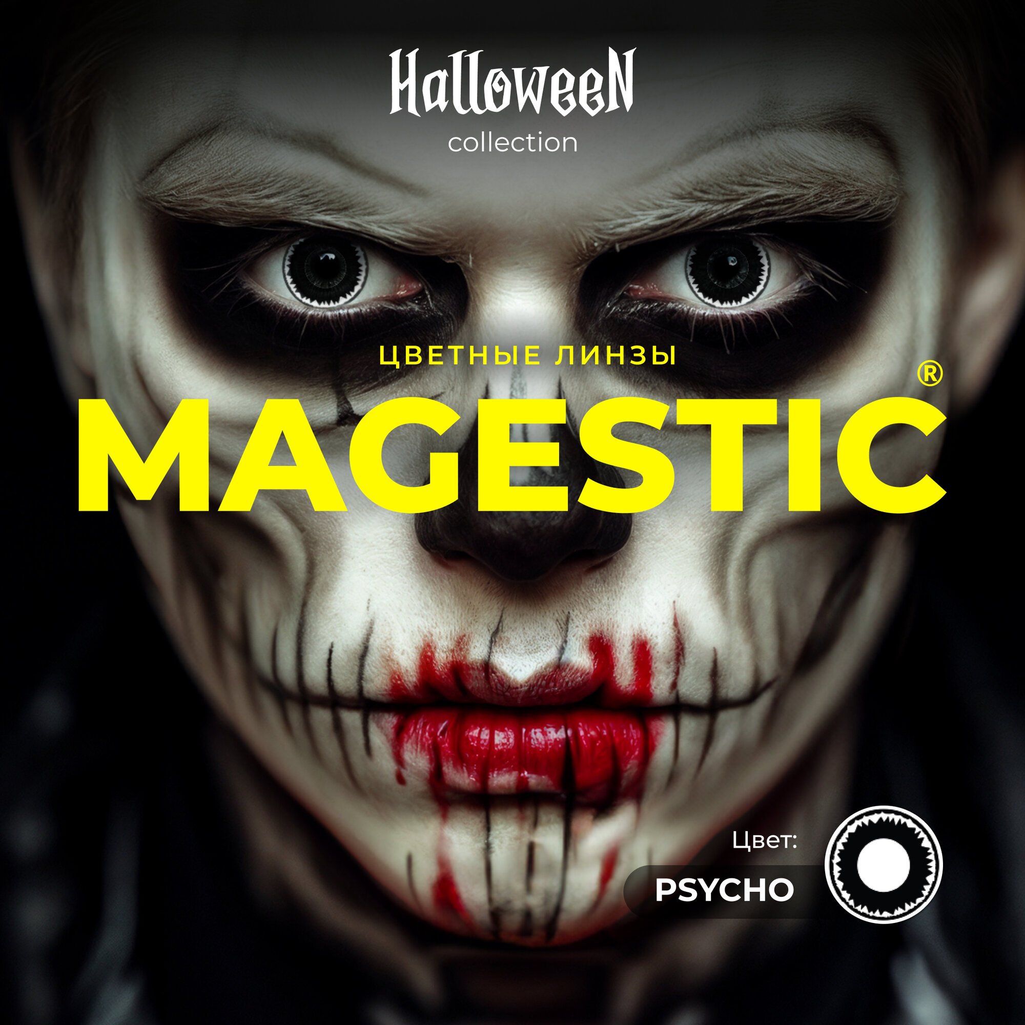Купить Цветные контактные линзы MAGESTIC Halloween черные Psyhco, 1 пара