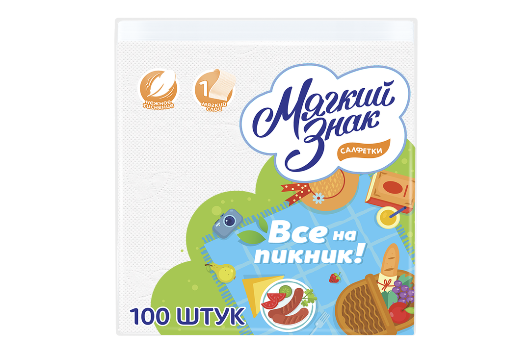 Салфетки Мягкий знак однослойные, 100 шт.