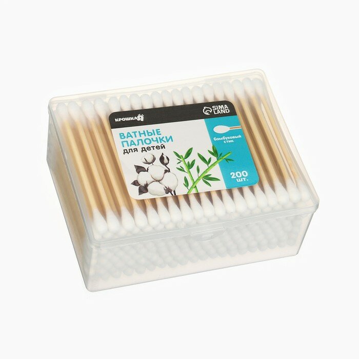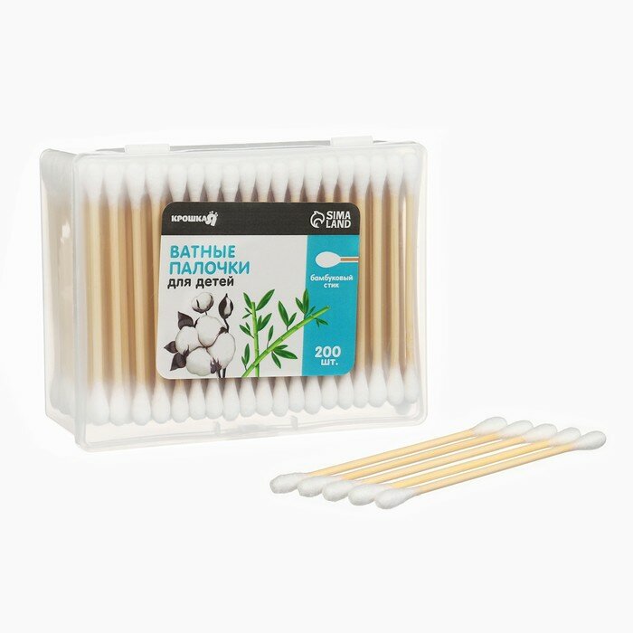 Купить Ватные палочки, коробка 200 шт., деревянные, бамбук, хлопок, для детей и малышей