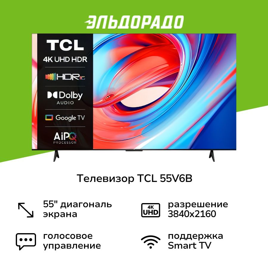 55" Телевизор TCL 55V6B-CN, 4K Ultra HD, черный, смарт ТВ, Google TV