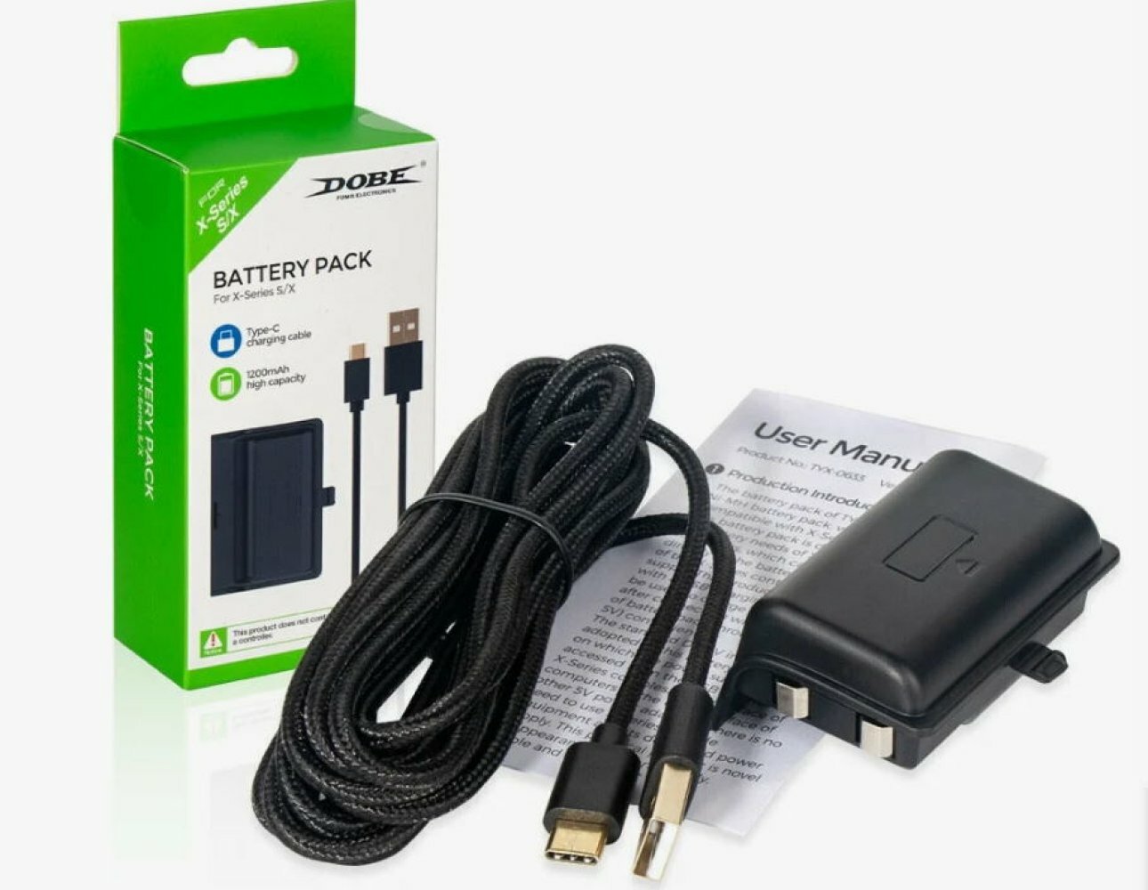 Аккумуляторная батарея для Xbox Series S X Аккумулятор Battery Pack 1200mAh + кабель Type-C USB 3 метра DOBE TYX-0633 белый