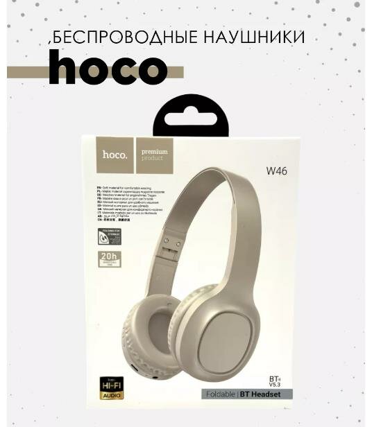 Наушники полноразмерные беспроводные Hoco W46 (Bluetooth) бежевый