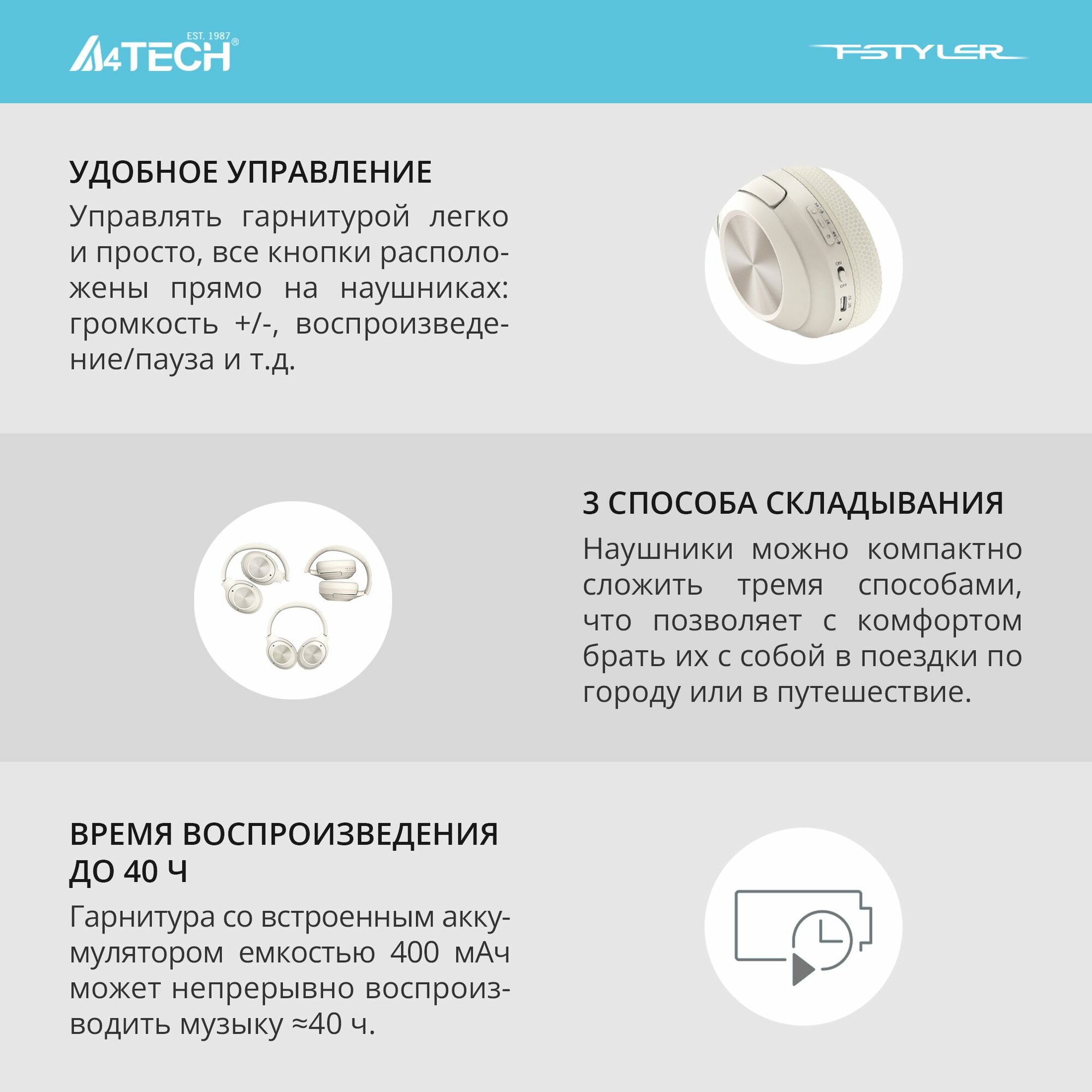 A4Tech Fstyler BH220 бежевый беспроводные bluetooth (BH220 BEIGE)