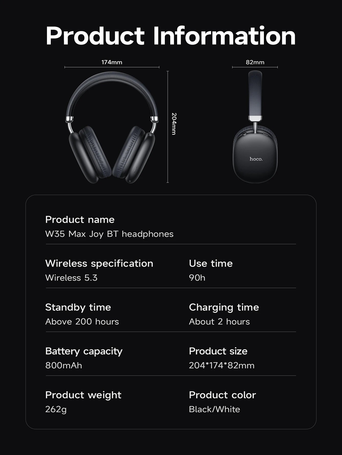 Беспроводные полноразмерные наушники с микрофоном Hoco W35 Max Bluetooth 5.3, цвет Черный