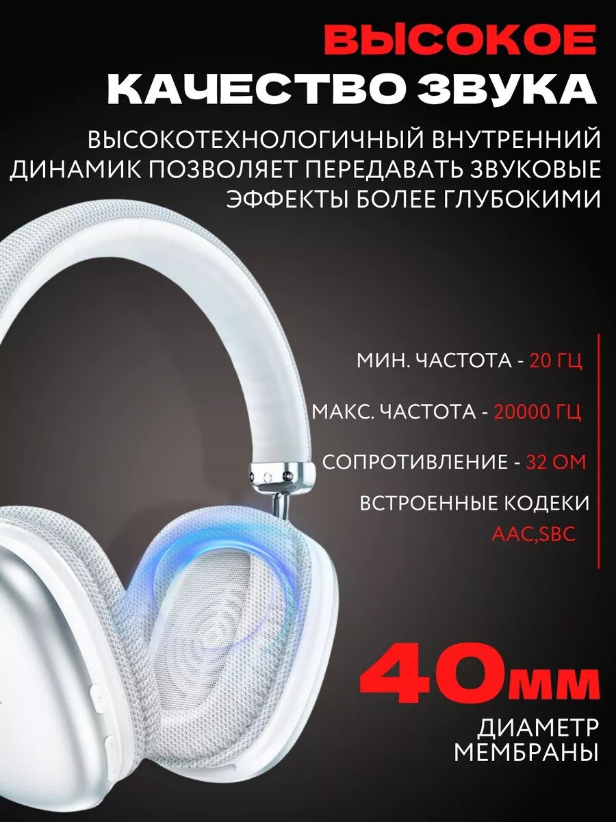 | Дополнительная информация | наушники беспроводные накладные 1шт; кабель для зарядки USB - Type С 1 шт; Кабель для подключения AUX 3.5 мм; инструкция по эксплуатации; фирменная подарочная упаковка |