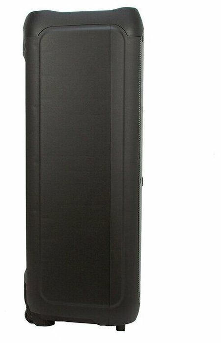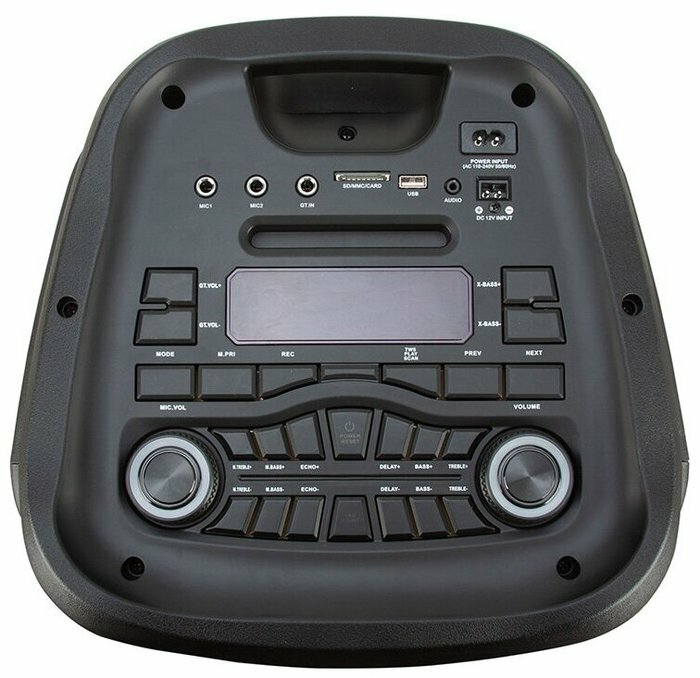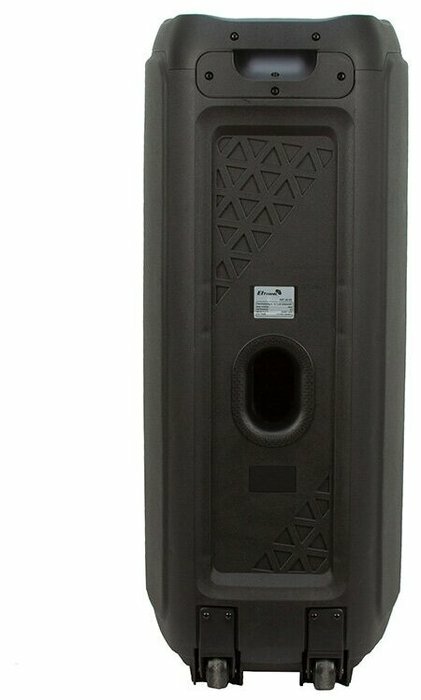 | Дополнительная информация | мощность PMPO 1200 Ватт; количество разъемов Jack 6.3 мм (микрофон-гитара) - 3 шт., колонка оснащена колесиками; регулировка громкости микрофона, приоритет микрофона, регулировка эха микрофона; комплектация: колонка, кабель AUX, 2 беспроводных микрофона, пульт ДУ, сетевой кабель, инструкция |