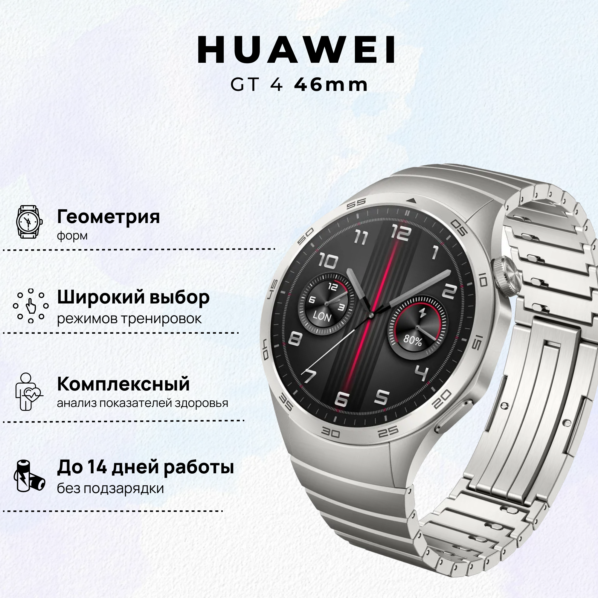 Смарт-часы HUAWEI WATCH GT 4 46mm Stainless Steel Strap (Phoinix-B19M)