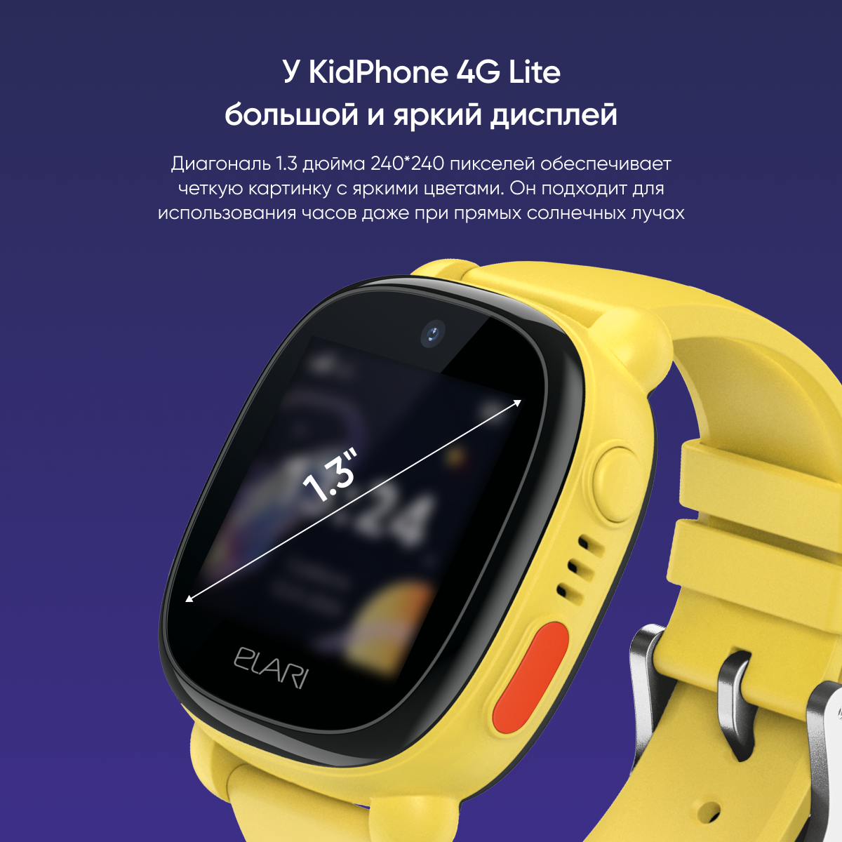 Смарт-часы ELARI KidPhone 4G Lite, 1.3", желтый/желтый [kp-4g-l-yel]