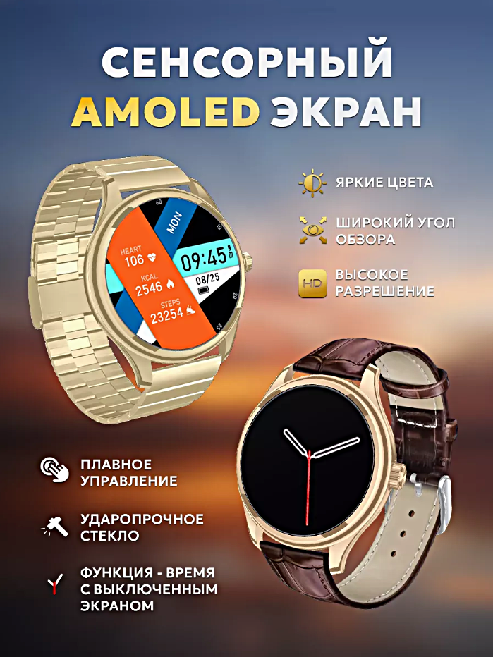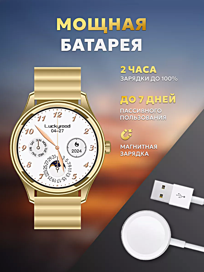 Cмарт часы LK WATCH 7 Умные часы PREMIUM Series Smart Watch AMOLED, iOS, Android, 3 ремешка, Bluetooth звонки, Уведомления, Золотистый интересное: