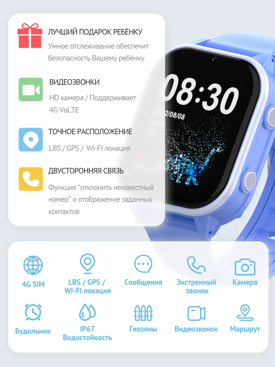СохранитьДетские умные часы Smart Baby Watch KT19 Pro 4G от Wonlex с GPS, телефоном, виброзвонком, видеозвонком, WhatsApp, голубые интересное: