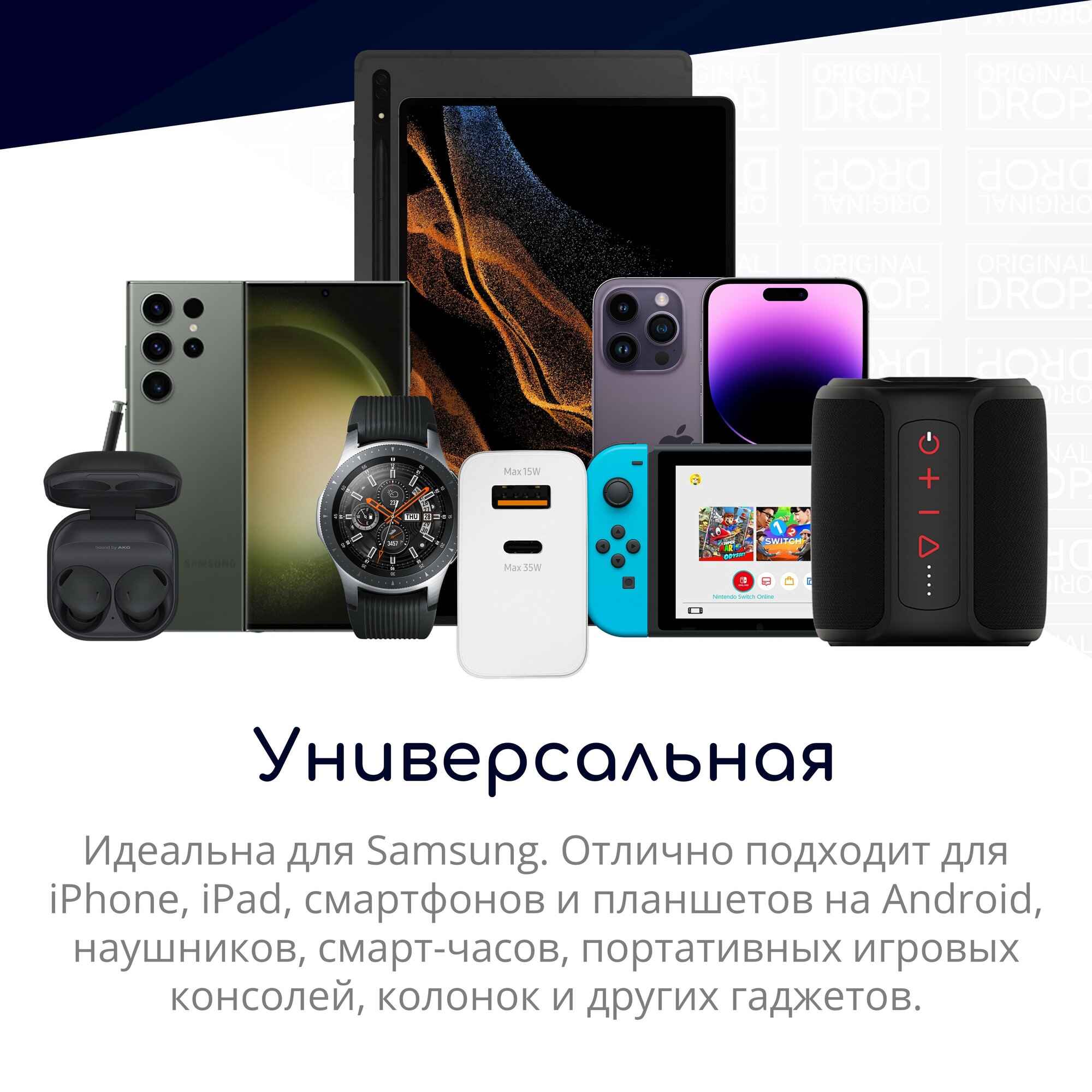 Ниже Вы можете прочитать отзывы на Супер быстрая зарядка для Samsung с 2 портами (Type-C и USB-A), белая / 35W PD Power Adapter Duo / Original Drop, ознакомится с подробными характеристиками, посмотреть интересные обзоры и фотографии на Супер быстрая зарядка для Samsung с 2 портами (Type-C и USB-A), белая / 35W PD Power Adapter Duo / Original Drop.
