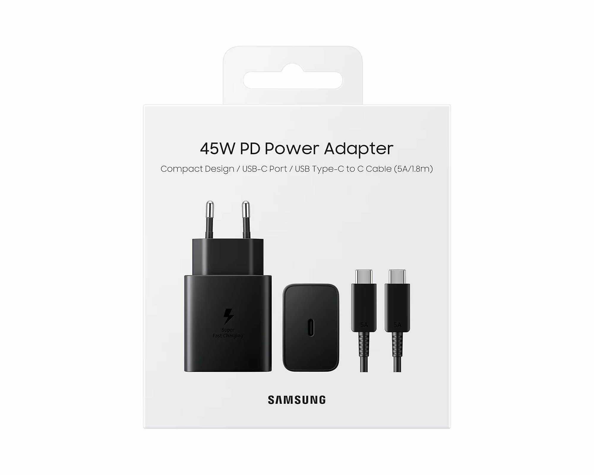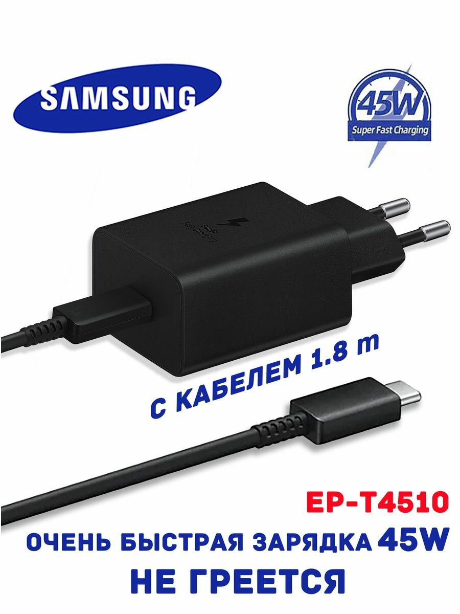 Зарядное устройство Samsung EP-T4510 Оригинал, кабель в комплекте, 45Вт, с быстрой зарядкой, черное