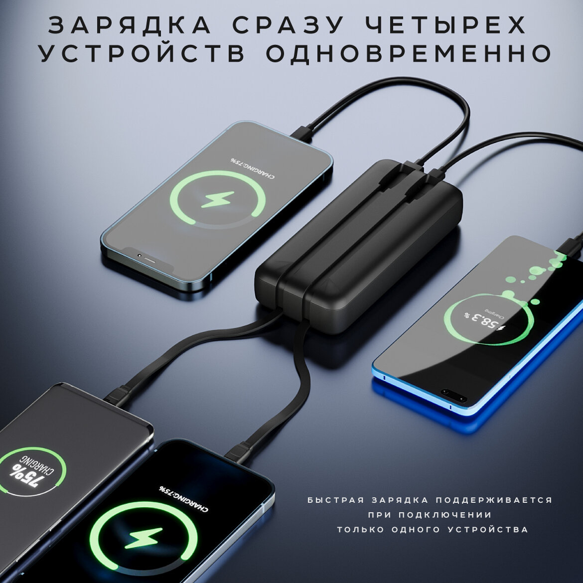 | Дополнительная информация | Встроенные кабели lightning и Type-C |