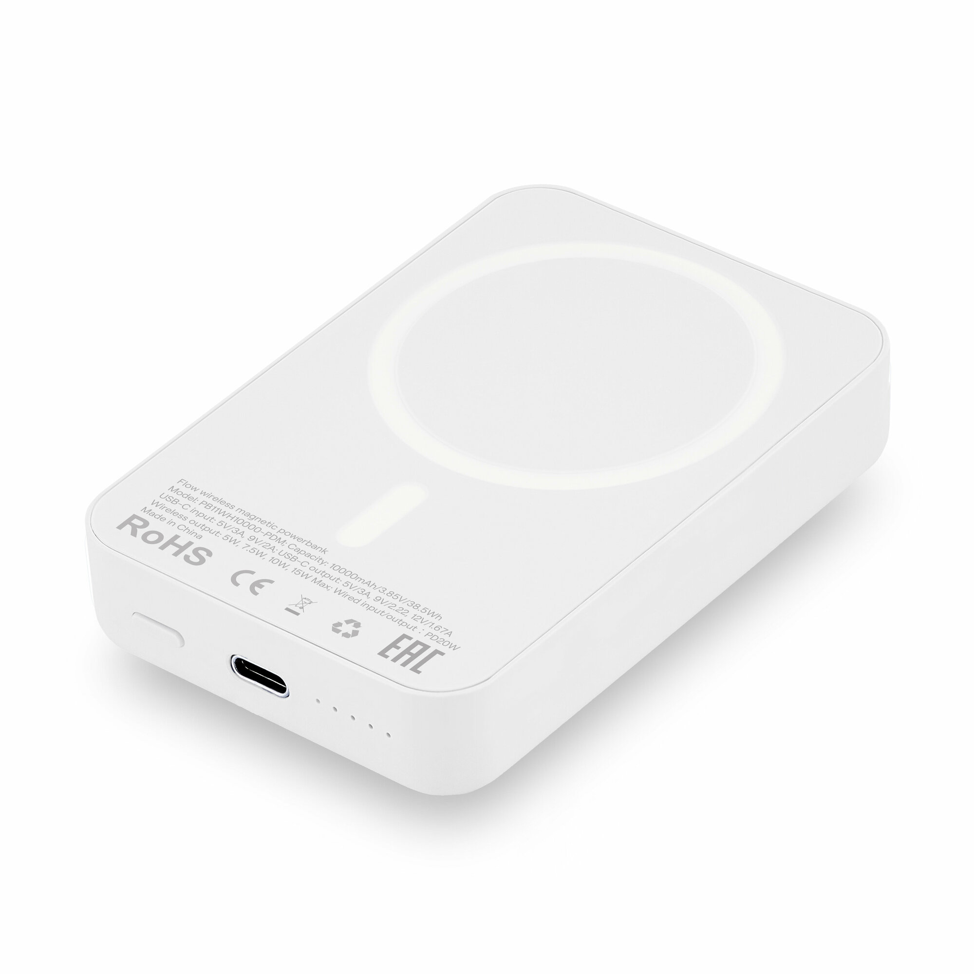 Купить Внешний аккумулятор с беспроводной зарядкой uBear Flow Magnetic Power bank 10000mAh, PD20W (PB11WH10000-PDM, белый)