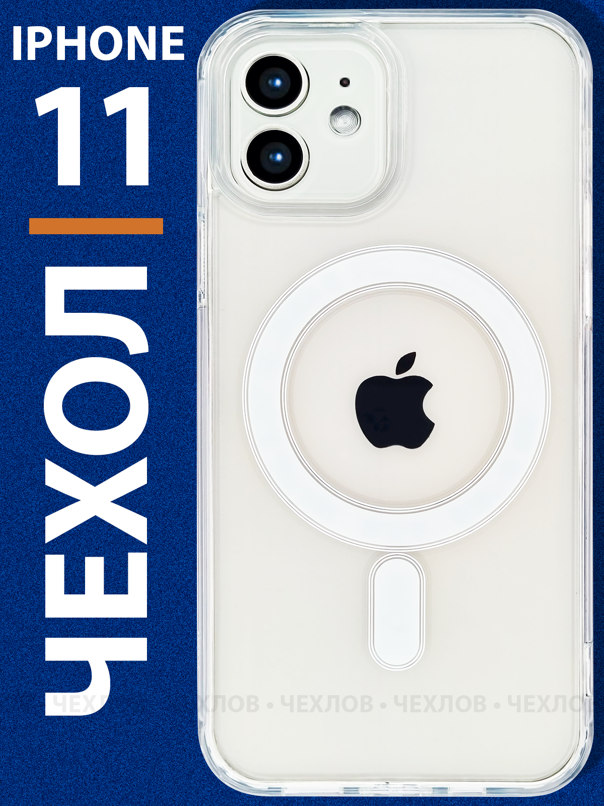Купить Чехол на Айфон 11 ( iPhone 11 ) magsafe, прозрачный, силиконовый, c защитой камеры, с магнитом, противоударный