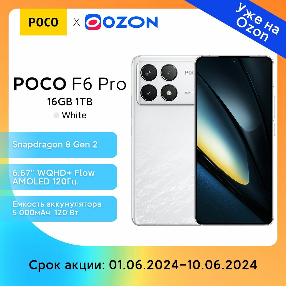 Смартфон POCO F6 Pro 16+1024Gb белый (MZB0GVKRU)