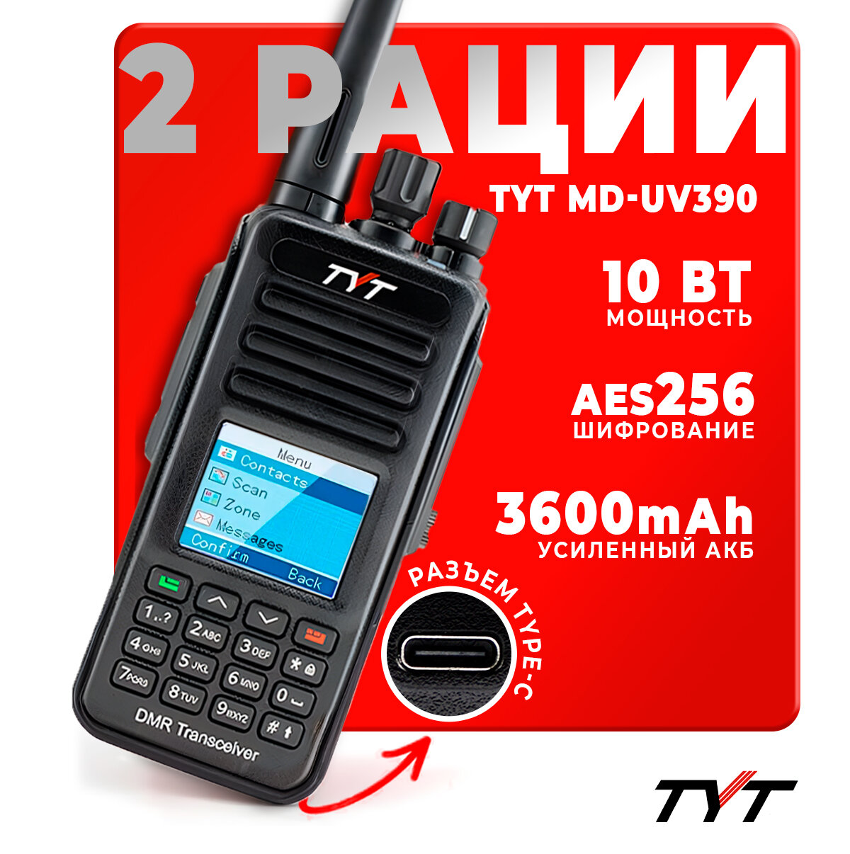 Радиостанция TYT MD-UV390 DMR 10 Вт с шифрованием, радиус до 8 км, комплект 2 шт интересное: