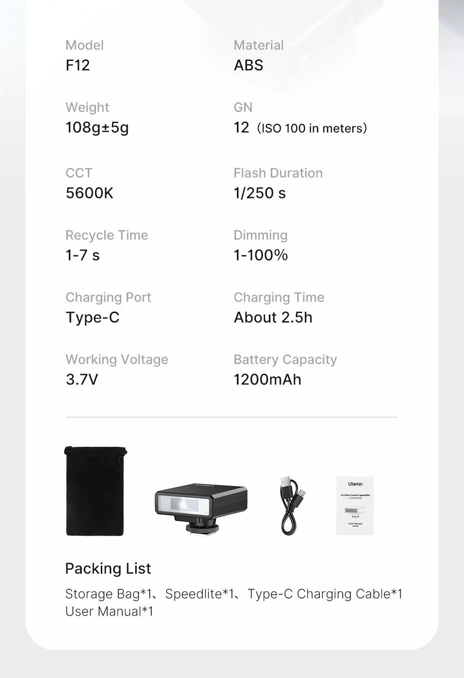 Мини-вспышка Ulanzi F12 для камеры Speedlite GN12, Black F12 интересное: