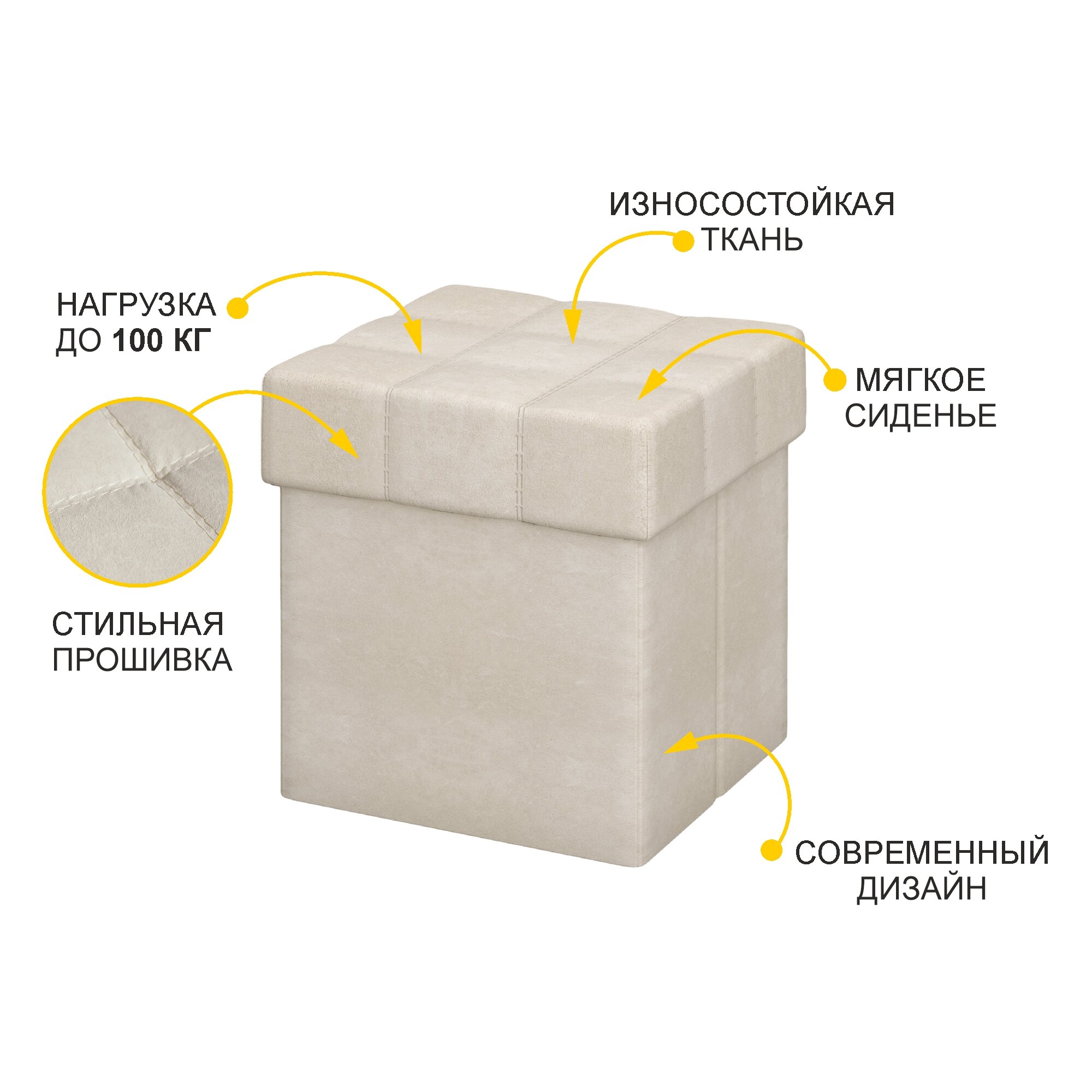 Пуф Монро 10 (01) Бежевый, 40х40х45 см