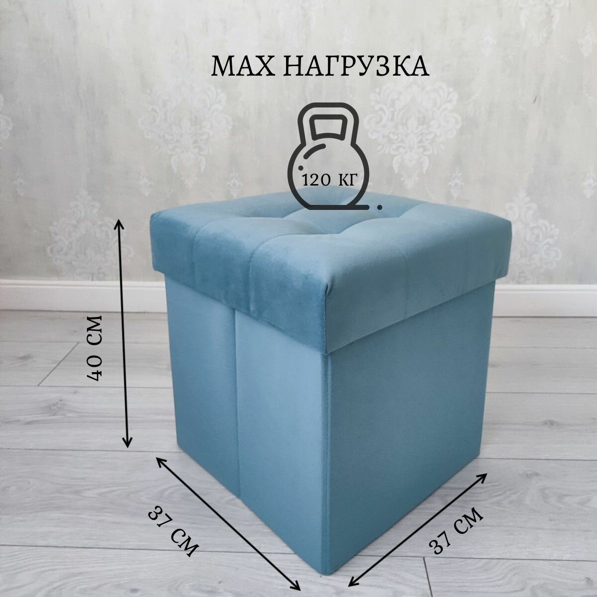 Купить Пуфик, пуф в прихожую с ящиком для хранения складной 37*37*40 см, бирюзовый