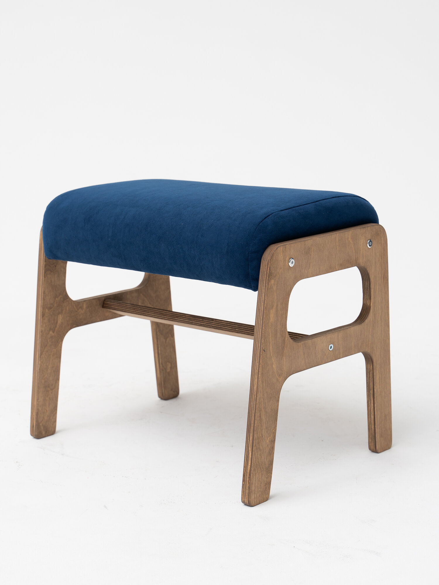 Пуф банкетка ZASIDELIS ЧИЛ для прихожей, на ножках, велюр, синий/коричневый, 52х30х41 см, до 100 кг