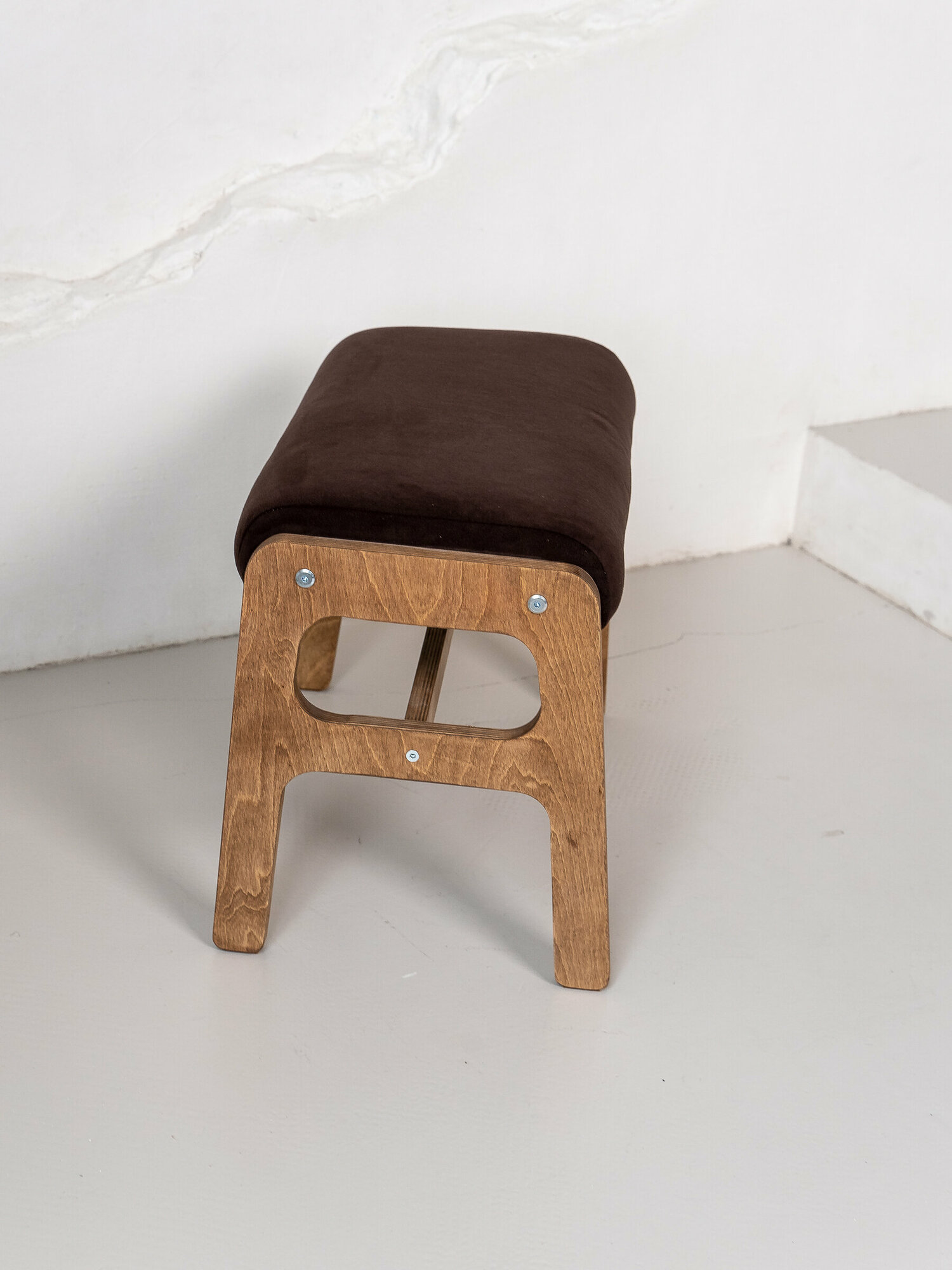 Пуф ZASIDELIS ЧИЛ банкетка на ножках для прихожей, коричневый/коричневый, из велюра, 52х30х41 см, до 100 кг