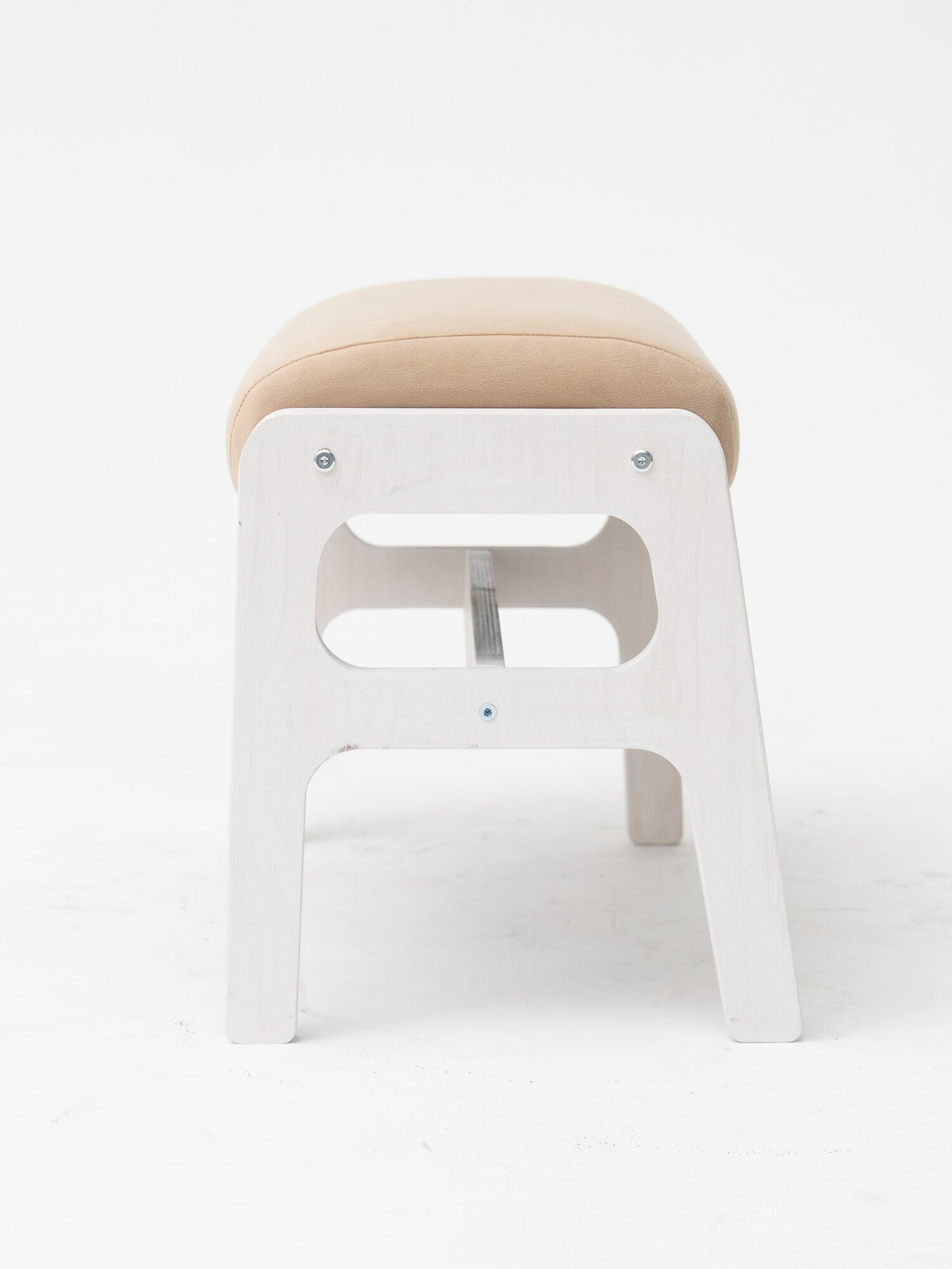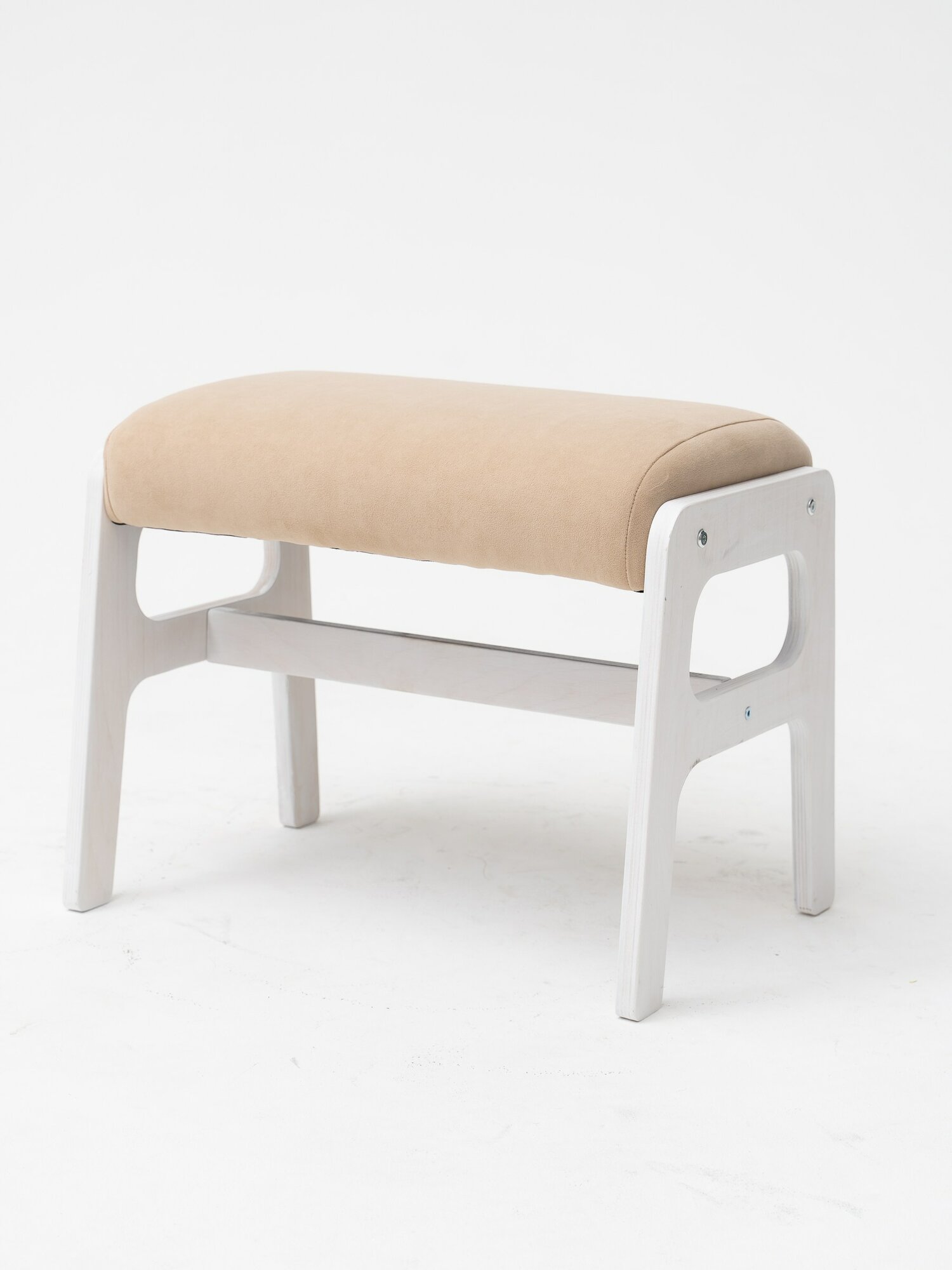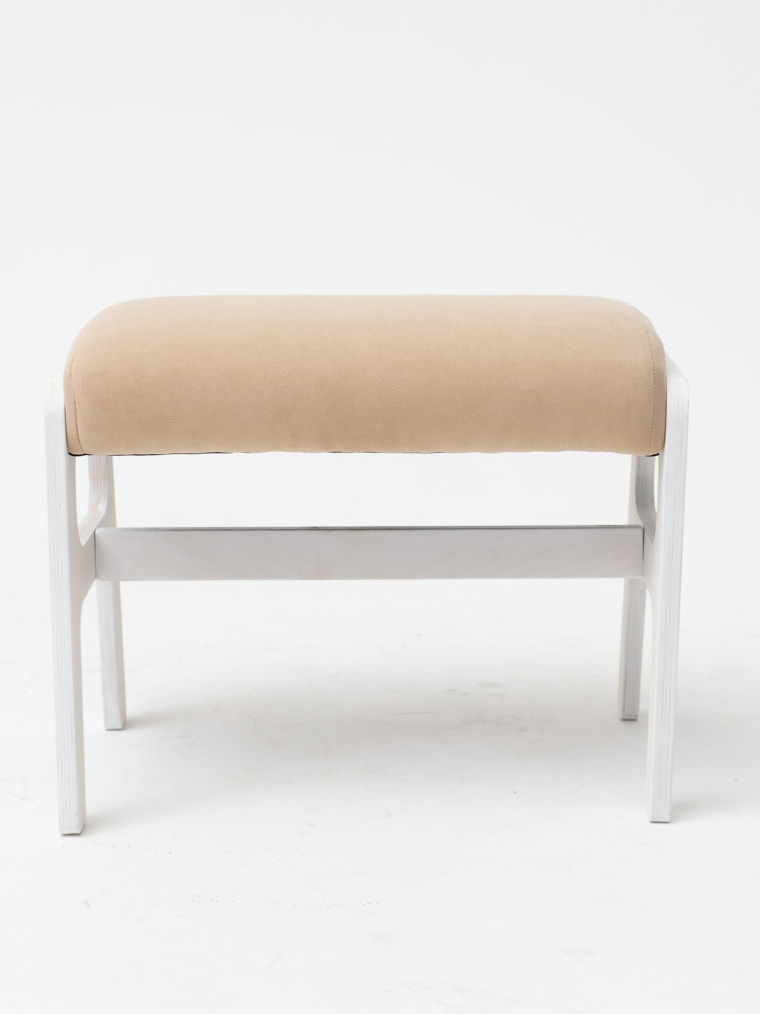 Пуф банкетка на ножках ZASIDELIS ЧИЛ для прихожей дома и офиса светло бежевый/белый, из велюра, 52х30х41 см, до 100 кг