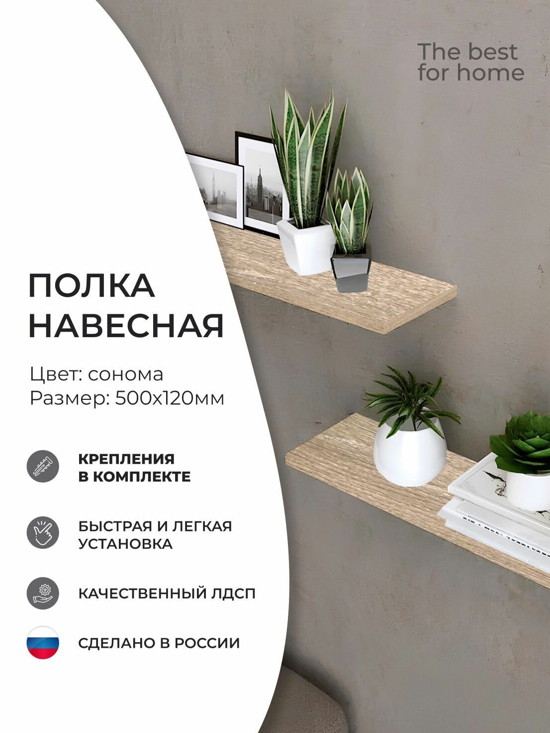 Настенная полка The Best for Home Loft, парящая конструкция, ЛДСП, 50x12x1,6см
