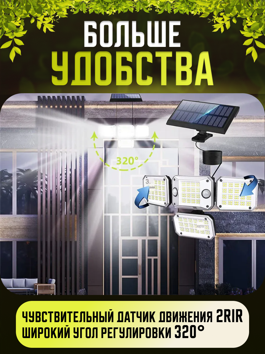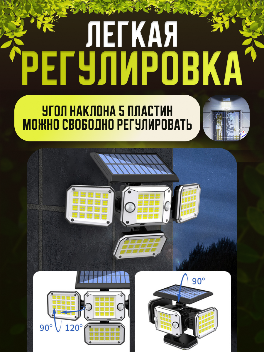 Уличный светильник Светодиодный прожектор с датчиком движения с раздельной солнечной панелью с пультом интересное: