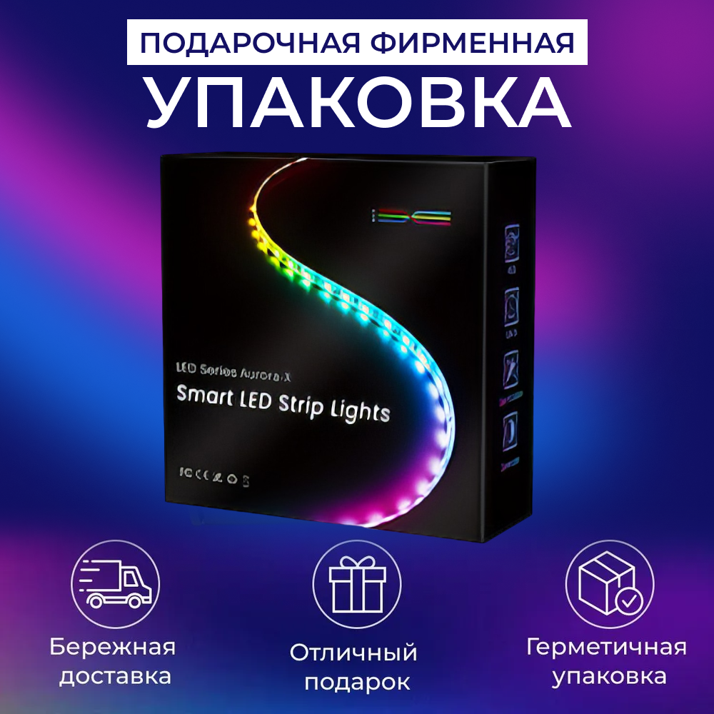 | Комплектация | Светодиодная лента, RGB контроллер, Пульт, Блок питания, QR код инструкция для установки приложения, подарочная упаковка |
