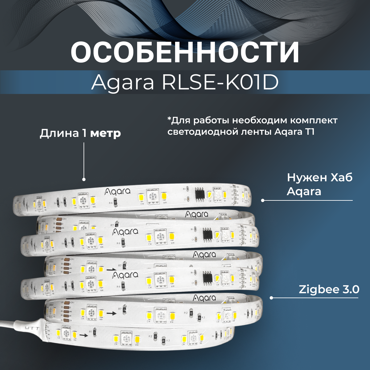 Удлинитель светодиодной ленты Aqara LED Strip T1 Extension Kit 1m (RLSE-K01D) интересное: