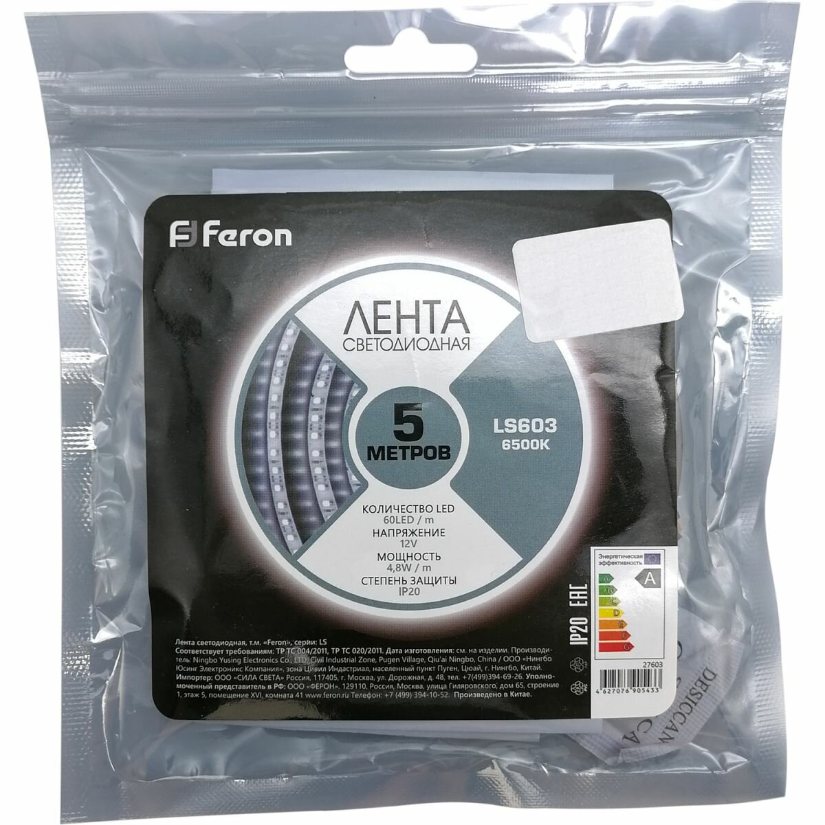 | Комплектация | Светодиодная лента FERON 60SMD(2835)/m 4.8W/m 12V 5m зеленый, LS603 Упаковка |