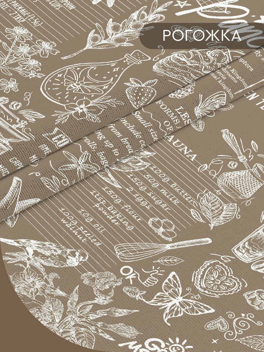 Фартук кухонный с карманом из рогожки, 100% хлопок, Травы