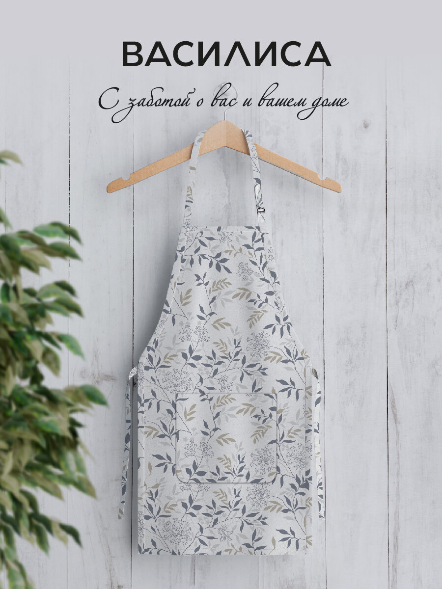 Фартук кухонный Василиса 60х80 см, с карманом, Рогожка, Травы
