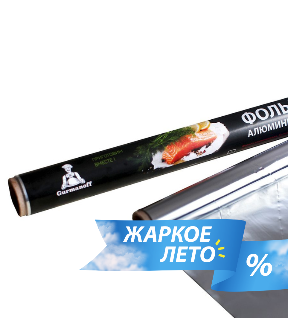 Фольга алюминиевая Gurmanoff, 44 см×10 м, 14 мкм, мягкая упаковка