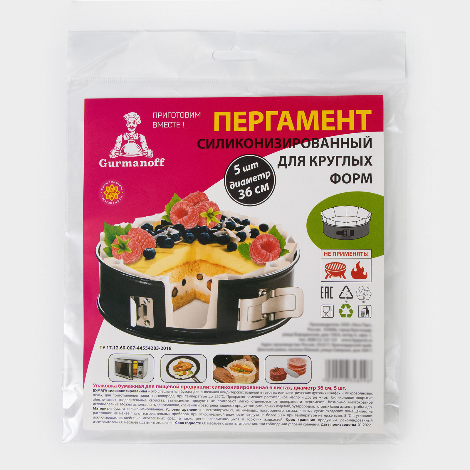 Купить Пергамент для выпечки Gurmanoff 36см 5 листов круглая бумага